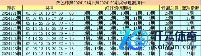 双色球第2024129期开奖号码为:09 10 13 19 24 32 + 01,其中红球遗漏期数分裂为:6期、7期、0期、8期、2期、1期,遗漏总期数为24期体育集锦,蓝球遗漏26期。