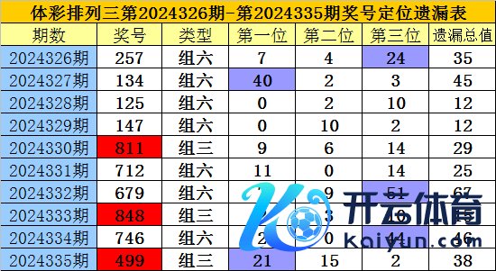 开奖追想:陈列三第2024335期奖号为:499体育集锦,诸君号码遗漏值区分为21、15、2,遗漏总值为38。