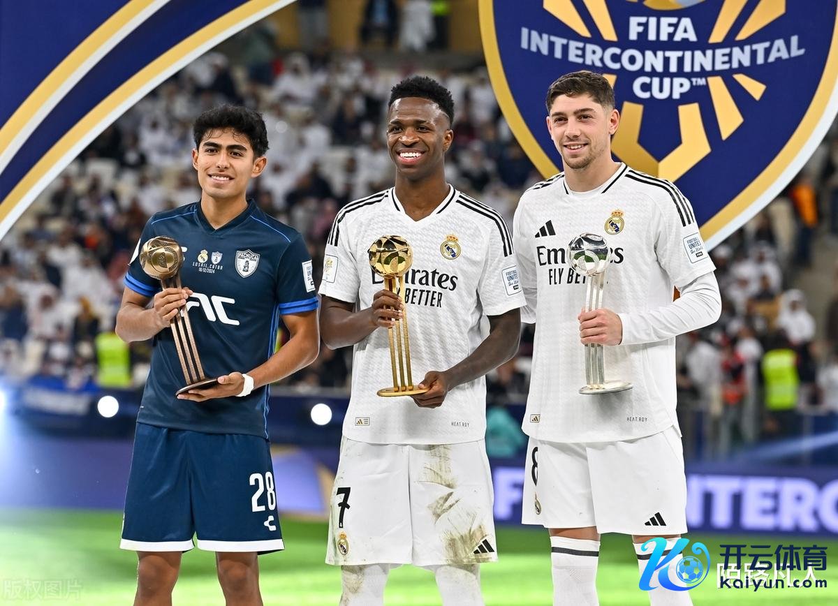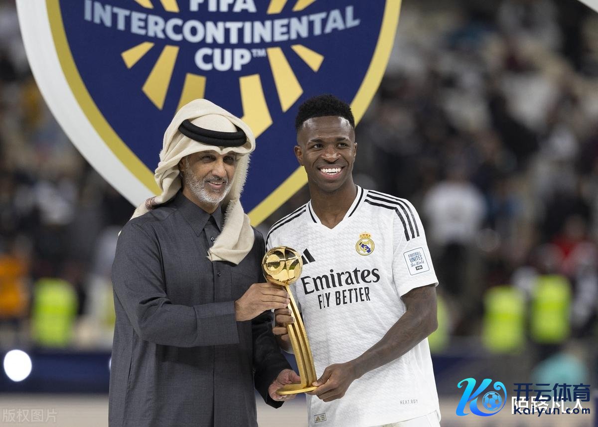在这场决赛中,维尼修斯的光辉无东说念主可挡。他的灵动卤莽、精确传球以及极具挟制的射门,一次次撕开敌手防地,为球队创造了绝佳的垂死契机并编削为进球。凭借此役的精彩证明,他将 2024 年世俱洲际杯金球奖、决赛最好球员和整届赛事最好球员这 3 项大奖收入囊中。在不到 24 小时内,从 FIFA 年度最好球员到洲际杯的多项荣誉,维尼修斯可谓奖杯拿得手软,迎来了个东说念主管事活命的高光技艺。