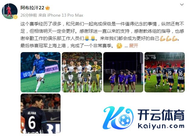 11月2日讯 今天,服从武汉三镇的阿布拉汗更新社媒,转头了球队这个赛季的融会。